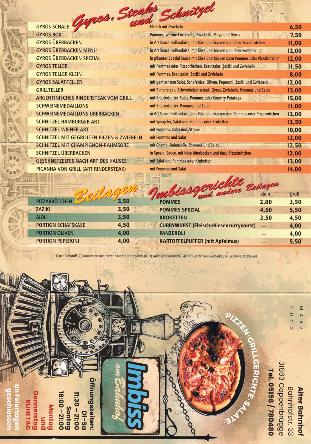Montag und Donnerstag sind Ruhetage, an Feiertagen geschlossen!